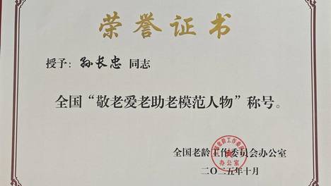无棣县棣丰街道孙长忠同志荣获全国“敬老爱老助老模范人物”称号