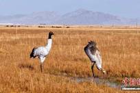 黑颈鹤现身青海大柴旦湿地