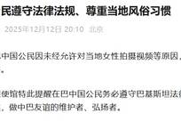 中使馆:个别在巴中国公民因未经允许对当地女性拍摄视频等原因,与当地民众产生争执